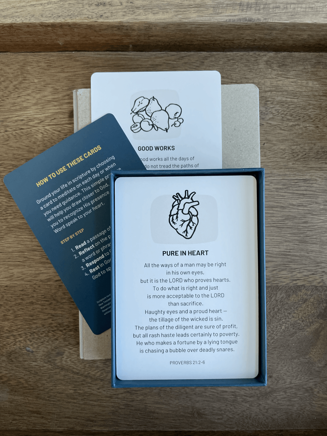 40 prayerfully designed and illustrated scripture (NAB translation) verse cards for daily spiritual nourishment