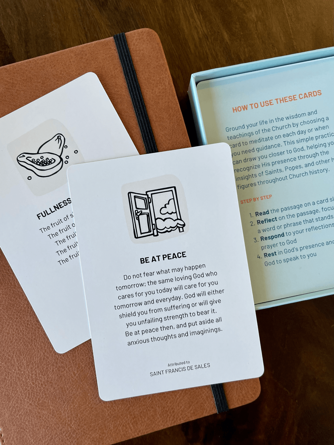 40 prayerfully designed and illustrated cards, featuring quotes and prayers rooted in the wisdom of the Church